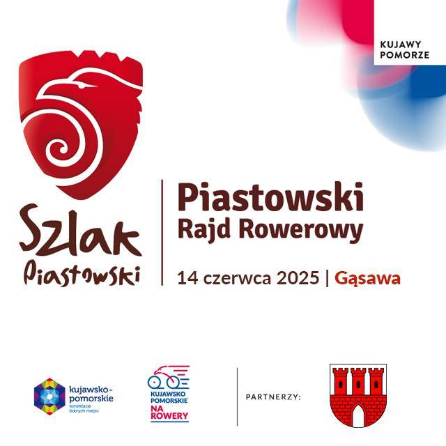 Zapraszamy serdecznie do zapisów na Piastowski Rajd Rowerowy. W tym roku spotykamy w Gąsawie, położonej w powiecie żnińskim. Startujemy w sobotę 14 czerwca ze Stadionu Gminnego im. Leszka Białego w Gąsawie.