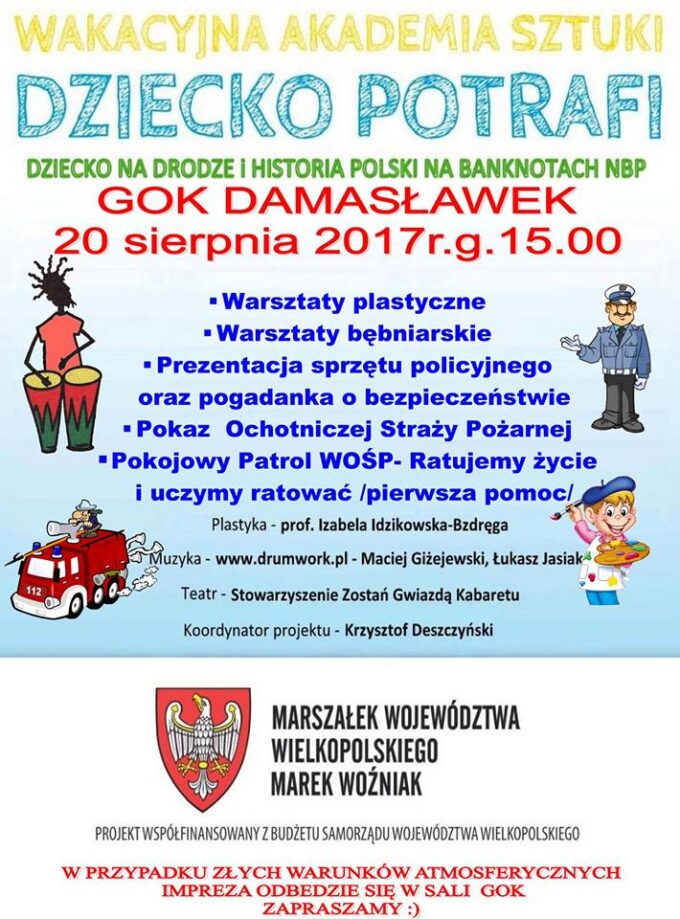 Wakacyjna Akademia Sztuki – GOK Damasławek 20 sierpnia godz. 17:00
