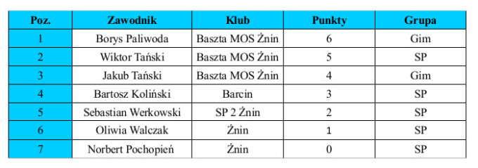 Turniej, w którym udział wzięło 10 zawodników został rozegrany 15 stycznia w sali gimnastycznej Szkoły Podstawowej nr 2 w Żninie. Wszystkich uczestników podzielono...