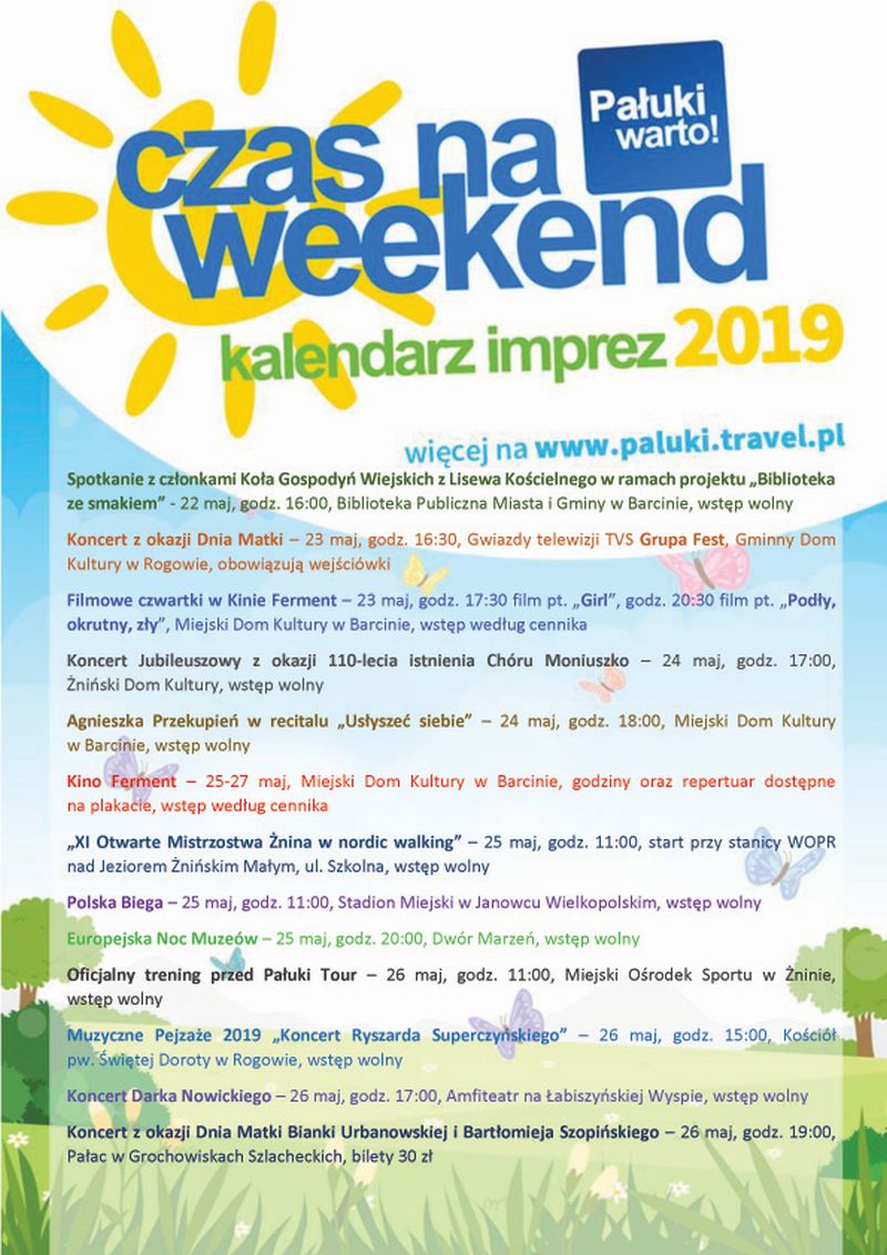 Sprawdź co będzie się działo w najbliższy weekend na Pałukach! Już dzisiaj Koncert Jubileuszowy z okazji 110-lecia istnienia Chóru Moniuszko w Żnińskim Domu Kultury. Będzie się działo również w Janowcu Wielkopolskim i Rogowie.