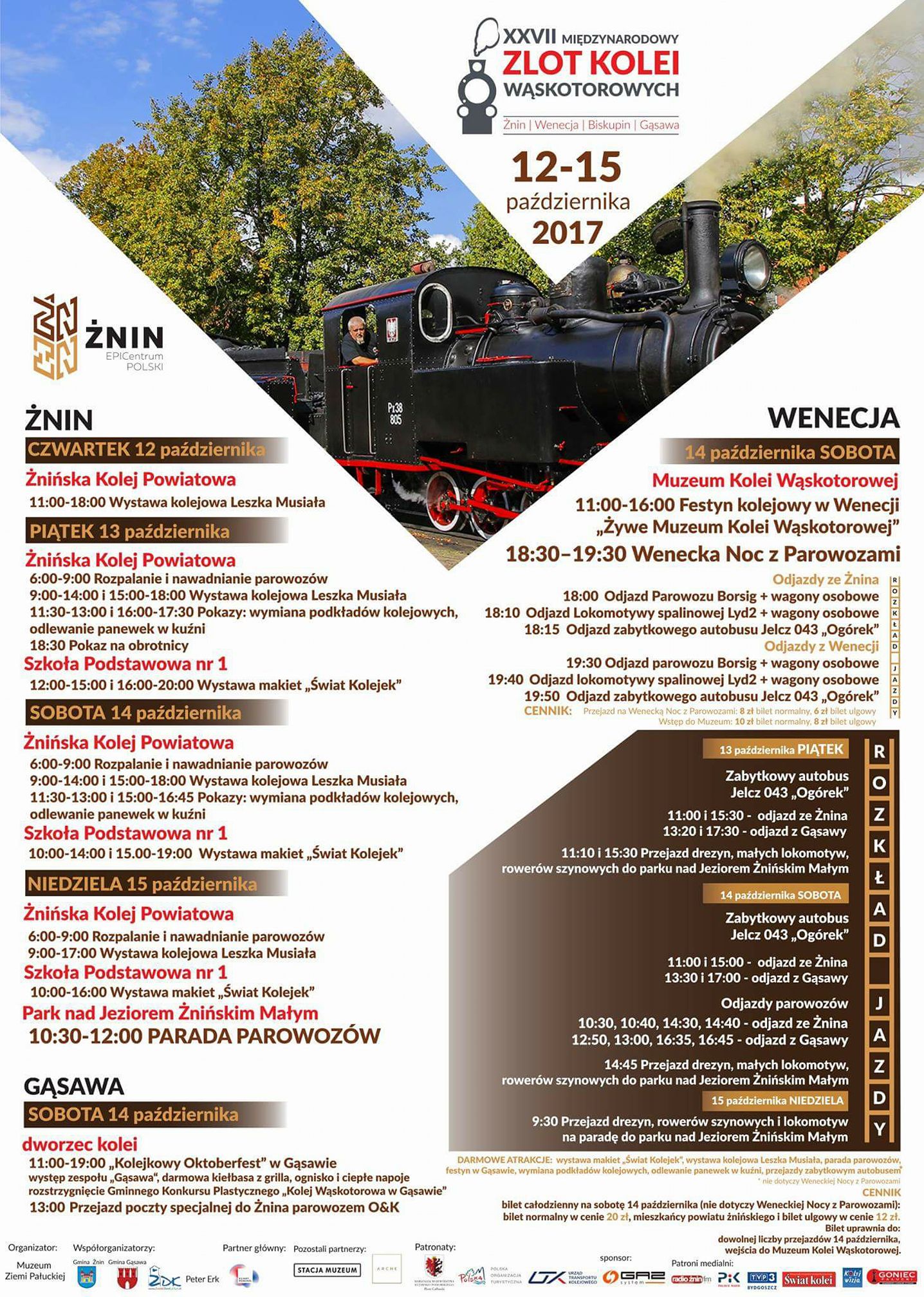 Odjazdy ze Żnina10:30 – Odjazd parowozu Px 38-805 + wagony osobowe10:40 – Odjazd parowozu O&K + wagony towarowe10:50 – Odjazd parowozu Borsig + wagony osobowe