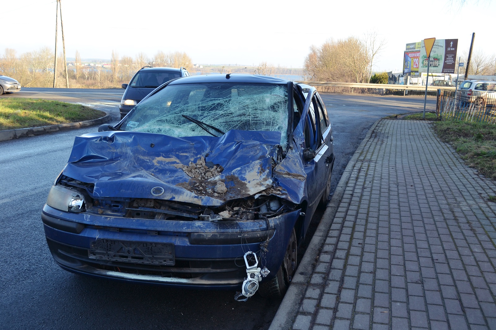 {jb_right45} Niestety wykonując ten manewr uderzył w lewy tył samochodu osobowego. Po uderzeniu ciężarówka przejechała na przeciwległy pas jezdni i zderzyła się z innym samochodem, również marki punto, którym kierował 45-letni mieszkaniec Bydgoszczy. W związku z zaistniałą sytuacją droga była nieprzejezdna w obydwóch kierunkach przez około godzinę.