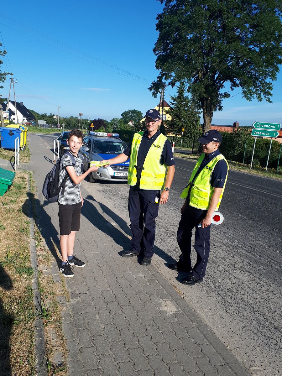 Mundurowi weryfikowali także prawidłowość oznakowania dróg w rejonie palcówek oświatowych. Niechronionym uczestnikom ruchu drogowego na terenach wiejskich wręczali kamizelki odblaskowe.