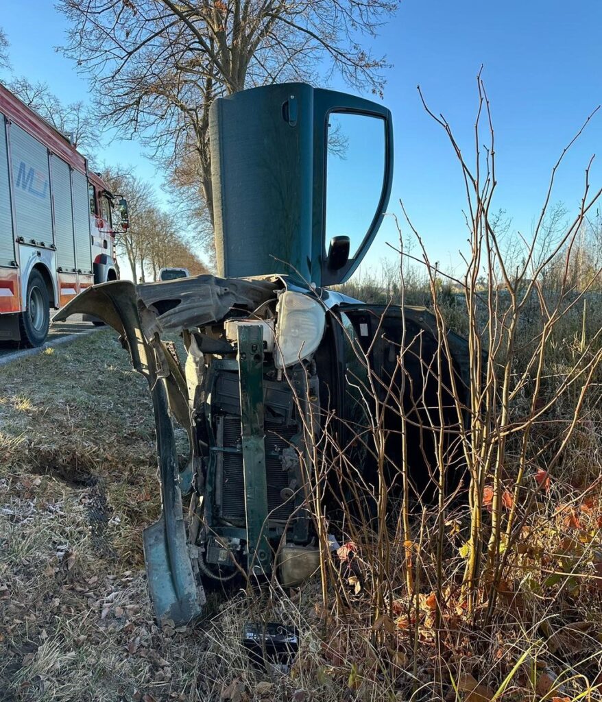Zmieniające się warunki na drogach bywają nie tylko dużym utrudnieniem dla kierowców, ale również niosą ze sobą niebezpieczeństwo. Śliska nawierzchnia zmniejsza przyczepność do podłoża i wydłuża drogę hamowania. O skutkach niedostosowania prędkości do warunków panujących na drodze przekonał się w miniona sobotę (22.11.2025) kierujący pojazdem marki Toyota Yaris.