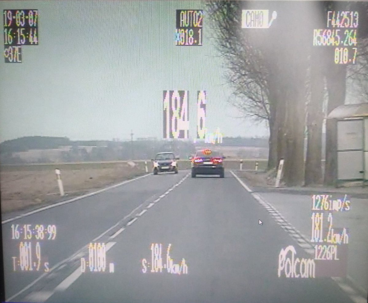 Do zdarzenia doszło w czwartek, 7 marca 2019 o godz. 16.15 w Młodocinie. Policjanci żnińskiej „drogówki”, jadąc nieoznakowanym radiowozem wyposażonym w wideorejestrator, na drodze wojewódzkiej nr 251 zauważyli audi, którego kierowca poruszał się ze znaczną prędkością. Funkcjonariusze ruszyli za nim. Wykonali pomiar prędkości i okazało się, że kierowca, w miejscu gdzie obowiązuje ograniczenie do 90 km/h, poruszał się z prędkością 184 km/h. Wykroczenie zostało popełnione poza obszarem zabudowanym.
