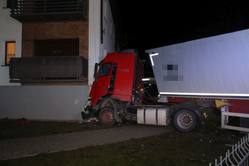 W piątek, 29 listopada kilka minut po godzinie 20.00 dyżurny żnińskiej komendy Policji został powiadomiony o tym, że w Łabiszynie pojazd ciężarowy miał wjechać w blok mieszkalny. Na miejsce natychmiast zostali skierowani policjanci z miejscowego posterunku oraz funkcjonariusze ruchu drogowego.
