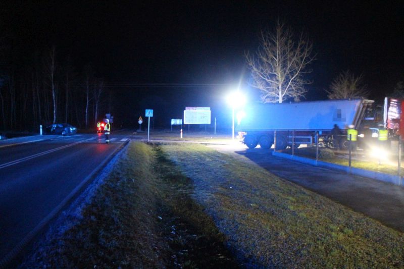 Kierowca zestawu pojazdów ciężarowych próbował unikną zderzenia. W tym celu zjechał w lewo uderzając w ogrodzenie, a następnie narożnik budynku mieszkalnego. Mężczyzna został przewieziony do szpitala w Żninie. Jak się okazało, nie odniósł poważniejszych obrażeń. Dlatego też zdarzenie zostało zakwalifikowane jako kolizja drogowa.