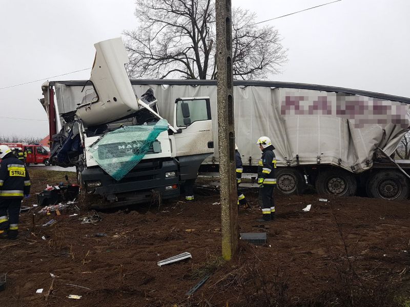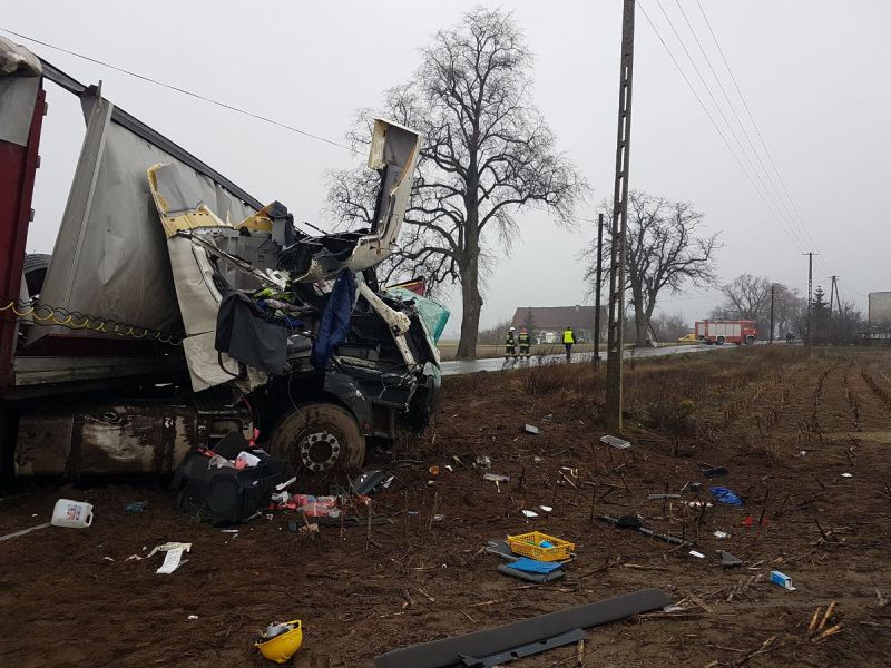 O niebywałym szczęściu może mówić kierujący zestawem pojazdów ciężarowych, który niemalże otarł się o śmierć. Pojazd, którym kierował został poważnie uszkodzony. Sam kierujący, na szczęście, nie odniósł poważniejszych obrażeń. Policjanci ukarali go mandatem karnym.