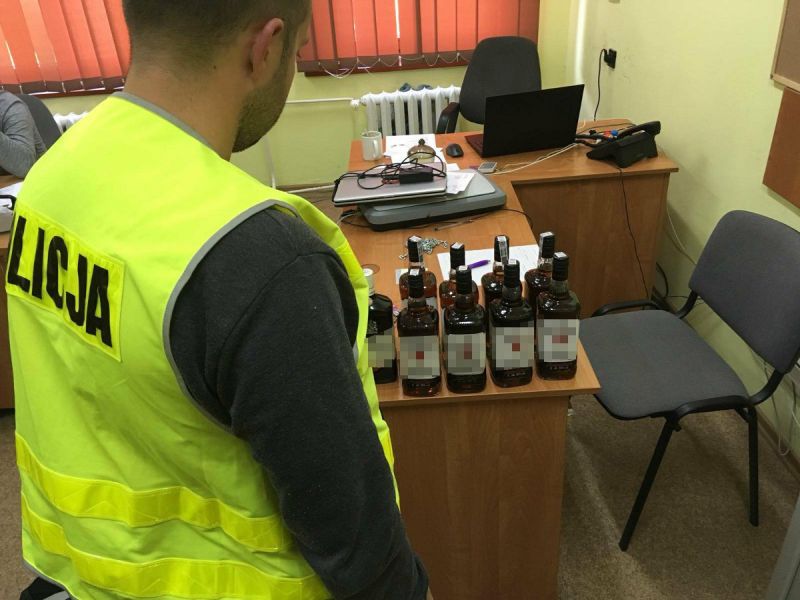 39-latek został zatrzymany i osadzony w policyjnym areszcie. Usłyszał zarzut z Kodeksu Karnego Skarbowego dotyczący przechowywania i przenoszenia wyrobów akcyzowych oznaczonych etykietami znanych marek z podrobionymi znakami akcyzy oraz zarzut z Ustawy Prawo Własności Przemysłowej dotyczący obrotu alkoholem oznaczonym podrabianymi znakami towarowymi. Z nielegalnego procederu mężczyzna uczynił sobie stałe źródło dochodu. Teraz czeka go proces w sądzie. Grozi mu wysoka grzywna, kara pozbawienia wolności od 6 miesięcy do 5 lat, albo obydwie te kary łącznie.