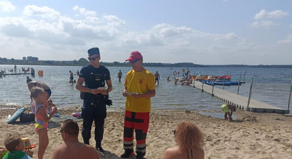 Funkcjonariusz z Mogilna wraz z ratownikiem WOPR na plaży w Wiecanowie rozdawali ulotki informacyjne dotyczące kampanii. Prowadzili również rozmowy z osobami wypoczywającymi na plaży na temat bezpiecznego wypoczynku nad wodą.