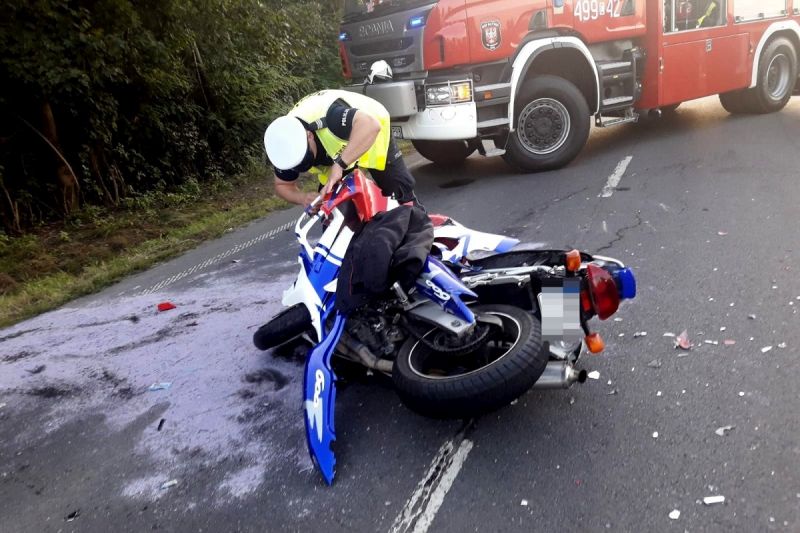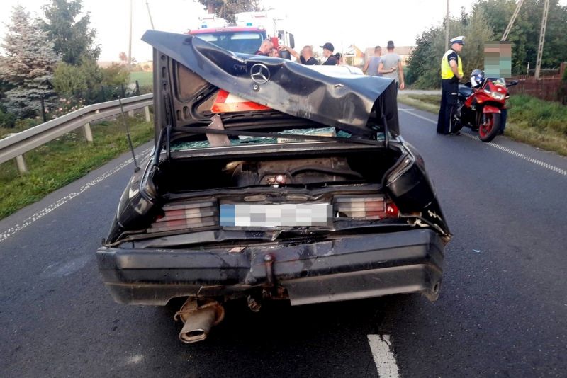 Zgłoszenie o zdarzeniu drogowym z udziałem motocyklisty i auta osobowego, dyżurny policji otrzymał 19 września br. około godziny 17.40. Okoliczności zdarzenia wyjaśniali skierowani na miejsce policjanci z referatu ruchu drogowego. Jak ustalono, 25-letni mieszkaniec gminy Sadki, kierując hondą z nieznanych przyczyn uderzył w tył mercedesa. Motocyklista nie posiadał uprawnień do kierowania hondą.