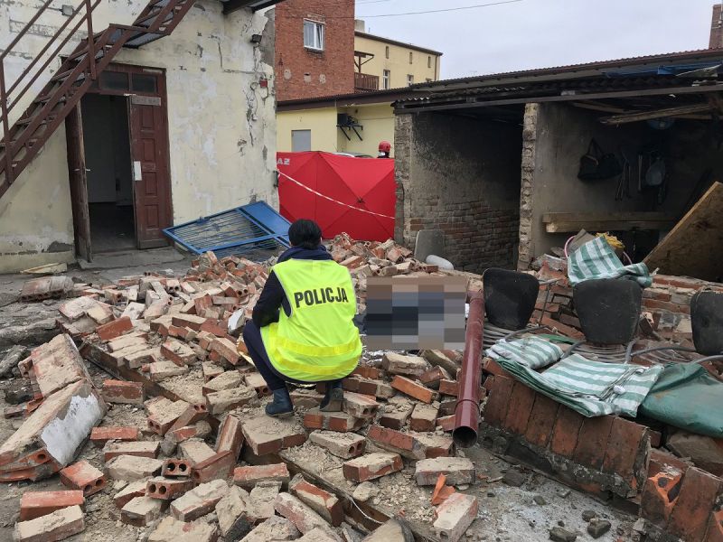 Jeden z mężczyzn w wieku 36 lat został przysypany elementami ściany i zginał na miejscu. Poszkodowanym w tym zdarzeniu jest także drugi pracownik w wieku 57 lat, który przebywa w szpitalu z obrażeniami ciała nie zagrażającymi jego życiu.