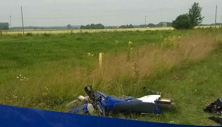 Zgłoszenie o wypadku drogowym z udziałem motocyklisty, dyżurny nakielskiej komendy otrzymał w minioną sobotę około godz. 8:30. Na miejscu wypadku pracowali policjanci referatu ruchu drogowego oraz kryminalni.