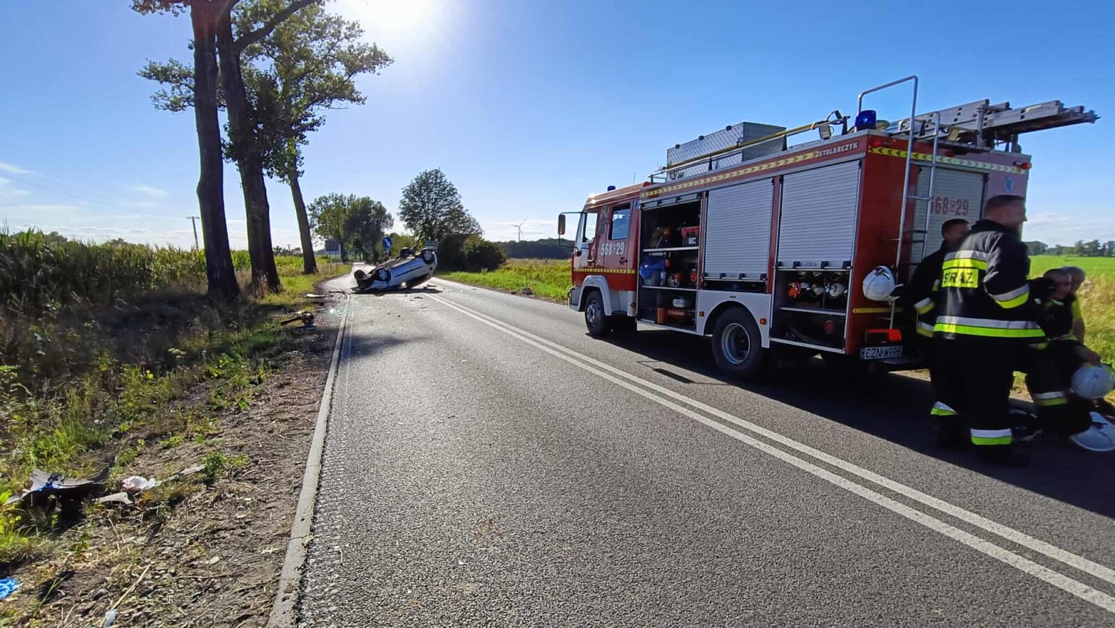 W wyniku zdarzenia poszkodowana została jedna osoba — kierowca samochodu. Dwaj pozostali pasażerowie nie odnieśli obrażeń. Na miejscu szybko pojawiły się służby ratunkowe, które udzieliły pomocy poszkodowanemu.
