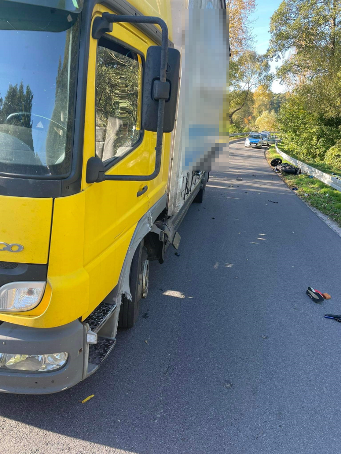 Ze wstępnych ustaleń policjantów pracujących pod nadzorem prokuratora wynika, że 36-letni kierujący motocyklem yamaha, na łuku drogi wyprzedził motorower, po czym doprowadził do zderzenia z jadącym z przeciwka pojazdem ciężarowym m-ki Mercedes, a następnie uderzył w barierę energochłonną.