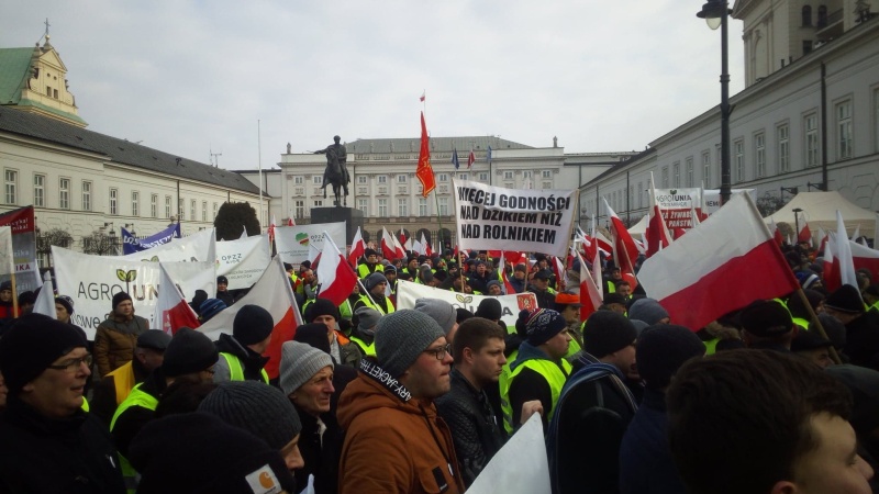 Rolnicy wyruszyli z Placu Defilad, którego prowadził kondukt żałobny, z niesioną przez rolników trumną, na które siedzi kukła ubrana na biało. Na znak protestu rolnicy zabrali ze sobą żółte kamizelki, flagi i transparenty. W proteście tym bierze również udział ponad 100 rolników z terenu Pałuk.