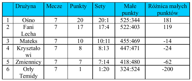 Podczas siódmej kolejki Janowieckiej Ligi Siatkówki na parkiecie spotkało się sześć zespołów: Fani Lecha, Zmiennicy, Mateks, Kryształowi oraz Orły Temidy i Ośno.