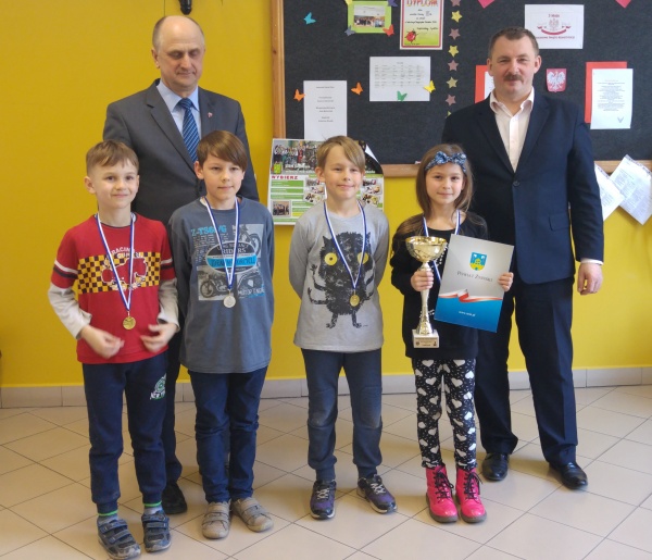 W rywalizacji drużyn złożonych z uczniów klas I-III bezkonkurencyjni okazali się podopieczni Elżbiety Góreckiej ze żnińskiej „dwójki”. Wygrali ligę z kompletem punktów i mając aż 10 „oczek” przewagi nad Zespołem Szkół Społecznych „Trójka” w Żninie. Na najniższym stopniu podium stanęli zawodnicy pierwszej drużyny Szkoły Podstawowej w Gąsawie z dorobkiem 10 punktów. Zwycięski zespół zagrał w składzie: Wojciech Popiołek, Piotr Leśniewski, Kornel Szypowski, Marcelina Brelińska i Jędrzej Popiołek.