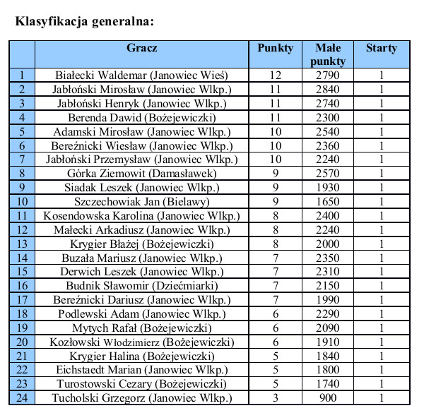 Ruszyła Janowiecka Liga Tysiąca 2017/2018. Za nami pierwsza kolejka, w której udział wzięło 24 graczy.
