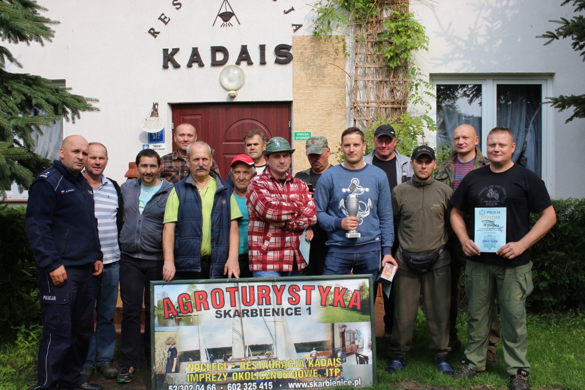 Zawody spławikowe o Puchar Komendanta Powiatowego Policji w Żninie mł.insp. Artura Krajewskiego zostały przeprowadzone w Gospodarstwie Agroturystycznym „Pod Żurawiem” w Skarbienicach  u państwa Kamili i Stanisława Siadak na stawie hodowlanym i rozpoczęły się o godzinie 7:00 zbiórką wszystkich uczestników.