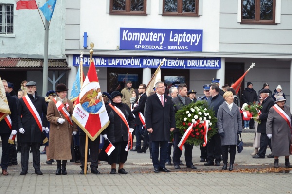 Przemówienie wygłosił Robert Luchowski Burmistrz Żnina, który wyraził m.in. zadowolenie, iż z roku na rok dostrzega coraz więcej obywateli biorących udział w obchodach, w coraz to szerszym przedziale wiekowym, co jest budujące. Wspomniał także o obecnym na uroczystości Chórze Moniuszko z ponad stuletnią tradycją, jako symbol w ówczesnych czasach walki z kulturą polską. Burmistrz Żnina zachęcił również do świętowania oraz szanowania wolności i niepodległości nie tylko 11 listopada, ale na co dzień.