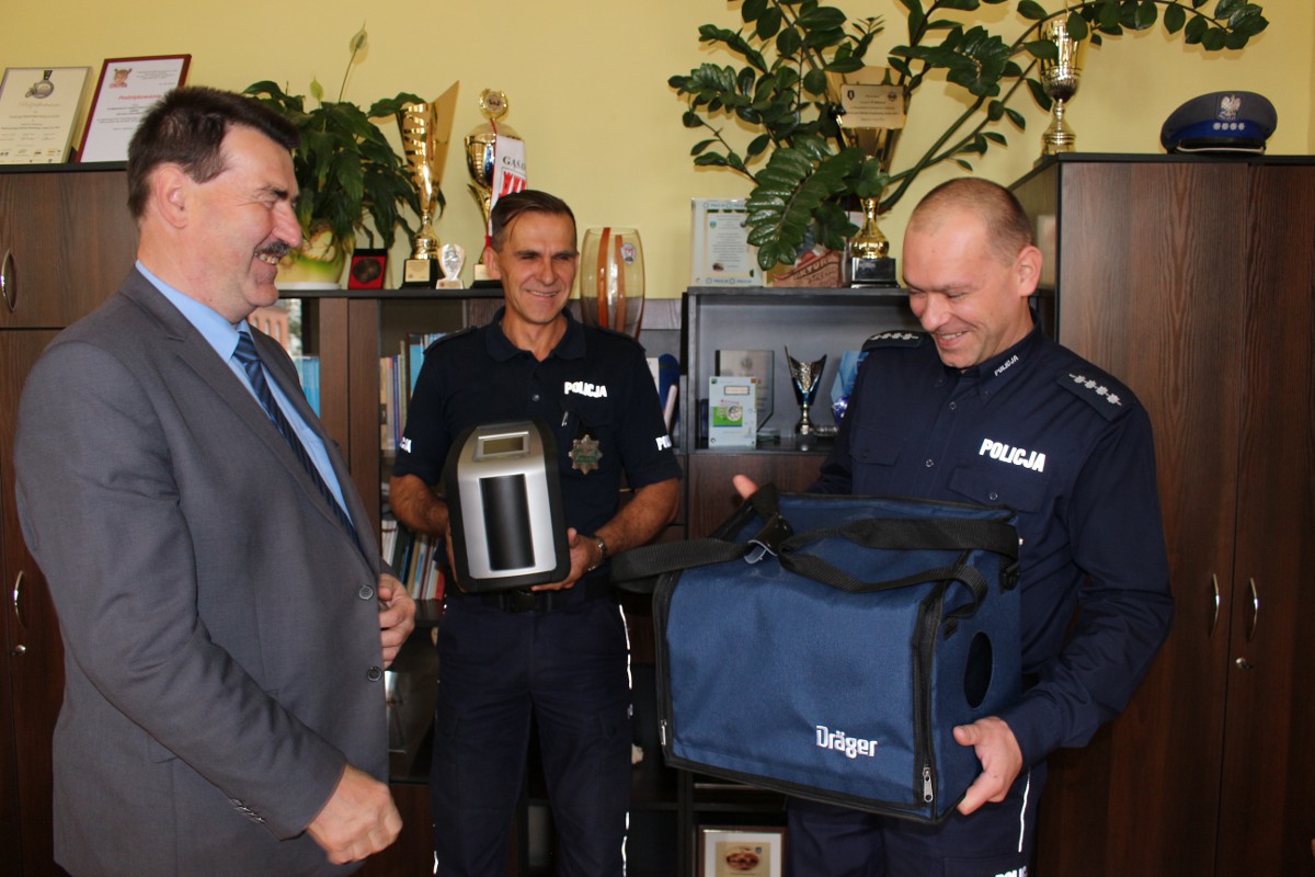 Uroczyste przekazanie sprzętu odbyło się w żnińskiej komendzie. Tak wartościowy podarunek przekazał Starosta Żniński Zbigniew Jaszczuk na ręce mł. insp. Artura Krajewskiego Komendanta Powiatowego Policji w Żninie w obecności asp. sztab. Tomasza Flicińskiego Naczelnika WPiRD oraz asp. sztab. Krzysztofa Brzykcego Kierownika OPI WPiRD.