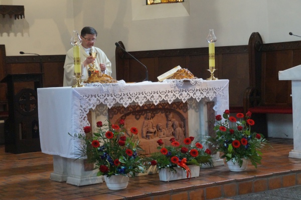 Dożynki rozpoczęły się uroczystą mszą świętą w kościele p.w. Najświętszej Maryi Panny Królowej Polski w Żninie. Podczas mszy ksiądz proboszcz Sławomir Rydz podziękował za tegoroczne plony błogosławiąc wieńce żniwne oraz przyniesione owoce i warzywa.