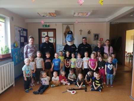 Dzielnicowi st. asp. Sławomir Maksym oraz sierż. szt. Arkadiusz Kaczmarek spotkali się z dziećmi z Przedszkola Stowarzyszenia Przyjaciół Szkół Katolickich w Lubczu. Towarzyszył im Polfinek – maskotka kujawsko-pomorskich mundurowych.