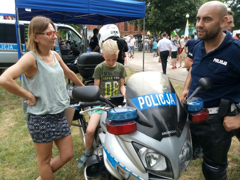 Mundurowi przygotowali dla dzieci pokaz radiowozu oraz sprzętu wykorzystywanego w służbie. W festynie uczestniczył również policyjny Polfinek – maskotka kujawsko – pomorskich policjantów. Zarówno dzieci jak i dorośli mieli dużo pytań dotyczących policyjnego wyposażenia, chętnie siadali za kierownicą radiowozu i policyjnych motocykli, robili pamiątkowe zdjęcia.
