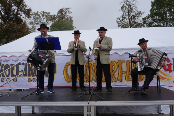 Na scenie rżnęła Gąsawska Kapela Biesiadna, zabawiając wszystkich wspominkami i kawałami w gwarze pałuckiej.
