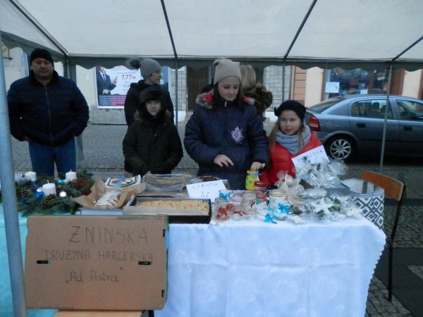 Jarmark świąteczny rozpoczął się o godzinie 14:00 przed samą Basztą. Do specjalnie przygotowanego basenu strażackiego usytuowanego koło niegdysiejszego „Sezamu” weszły Morsy ze Żnińskiego Klubu Morsa. Później organizatorzy rozdawali dzieciom i mieszkańcom Żnina bombki, którymi przystrojona została choinka. Ponadto na scenie, ze świątecznym repertuarem wystąpiło Studio Piosenki, zespół Pałuczanki i Czerwone Róże. Przez cały czas zainteresowani mogli zakupić świąteczne ozdoby, lampki, miód oraz spróbować czerwonego barszczu i kiełbaski z grilla, które przygotowało Gospodarstwo Agroturystyczne ze Skarbienic. Słodkich wypieków można było również spróbować od Pań z Koła Gospodyń Wiejskich oraz uczniów żnińskich szkół.