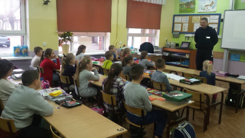 W piątek sierż. sztab. Krzysztof Zientek  przeprowadził pogadanki w zerówce, I, II i III-cich klasach SP 1. Policjant wśród najmłodszych, w związku z nadchodzącymi feriami, przybliżał zagadnienia związane z bezpieczeństwem. Zwracał uwagę na właściwy wybór miejsca zjeżdżania na sankach i łyżwach.