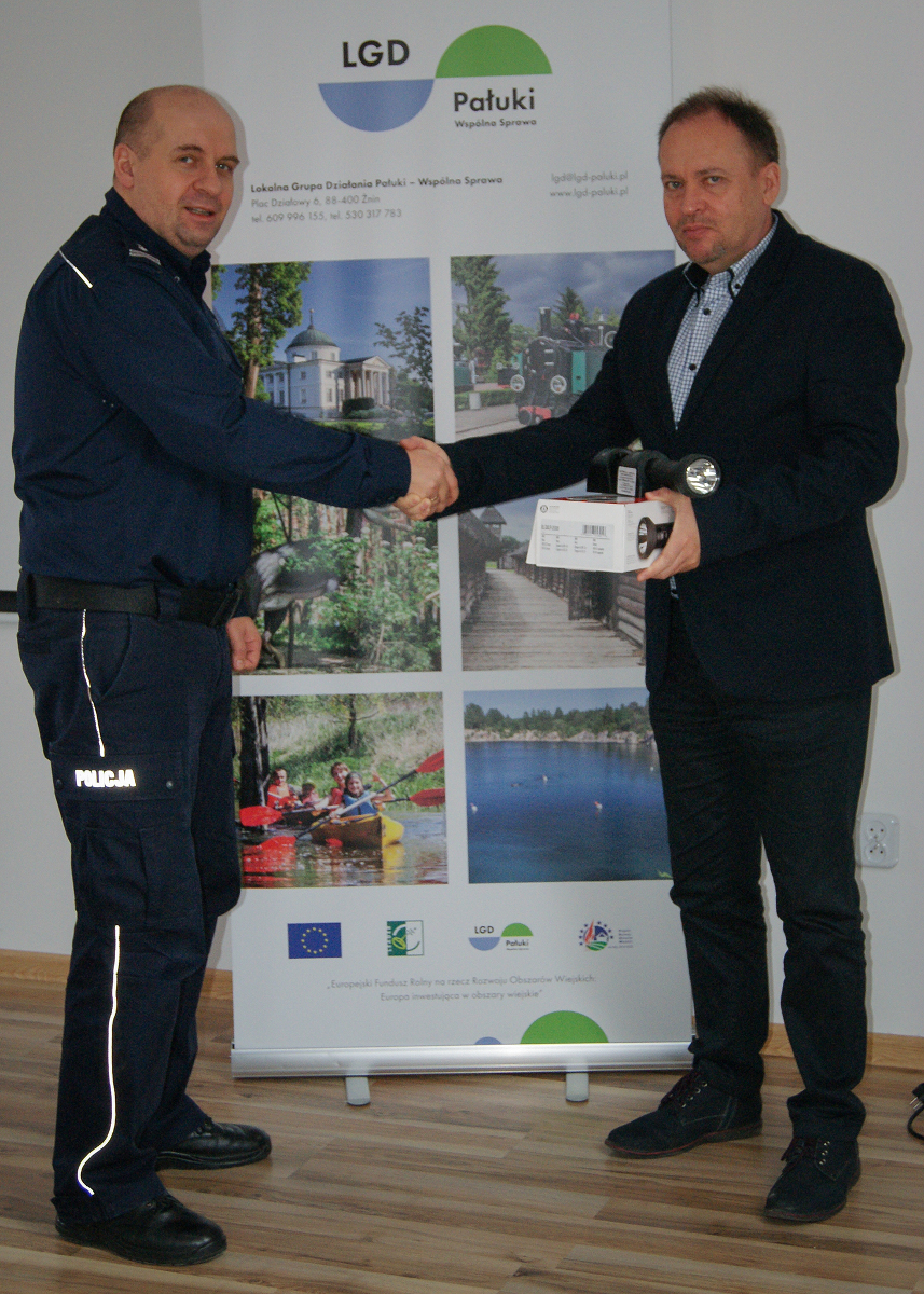W środę, 7 lutego 2018 roku prezes Stowarzyszenia Lokalna Grupa Działania „Pałuki – Wspólna Sprawa” z siedzibą w Żninie Pan Ryszard Ulatowski na ręce Komendanta Powiatowego Policji w Żninie mł. insp. Artura Krajewskiego przekazał latarki diodowe marki STREAMLIGHT. Ich zakup został w całości został sfinansowany przez stowarzyszenie. Dzięki takiemu wsparciu mundurowi będą mogli jeszcze skutecznej realizować służbowe obowiązki. W znacznym stopniu poprawią się warunki i bezpieczeństwo pracy policjantów. Znajdą one zastosowanie m. in. w kierowaniu ruchem oraz podczas wykonywania czynności na miejscu różnego rodzaju zdarzeń.