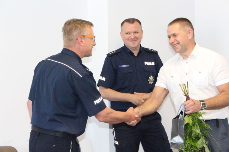 P.o. Komendanta Powiatowego Policji w Żninie kom. Mariusz Gaik uroczyście pożegnał i podziękował asp. sztab. Krzysztofowi Rygielskiemu za lata wzorowej służby, zaangażowanie w wykonywanie obowiązków służbowych oraz profesjonalizm. Do podziękowań przyłączyli się również policjanci, pracownicy cywilni oraz szef Ośrodka Zamiejscowego Prokuratury Rejonowej w Szubinie z siedzibą w Żninie Dariusz Mańkowski.