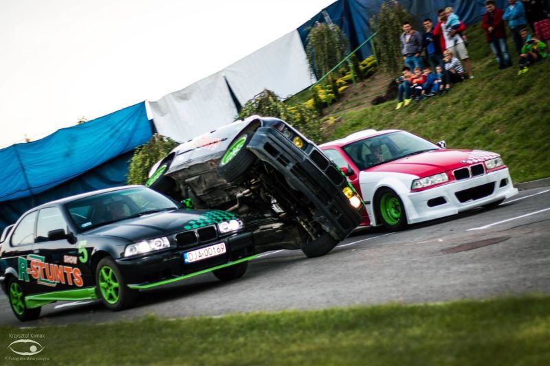 * przebijan…ie głową płonącej ściany, będąc jednocześnie na masce BMW;