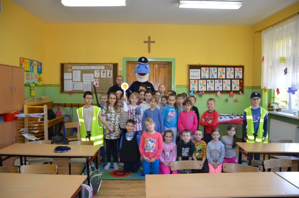 W poniedziałek dzielnicowi ze żnińskiej komendy st. asp. Maciej Słodkowski i sierż. sztab. Paweł Klucz, w ramach akcji profilaktycznej „Bezpieczeństwo moje = Bezpieczeństwo innych” przeprowadzili zajęcia w Niepublicznej Szkole Podstawowej w Brzyskorzystwi.