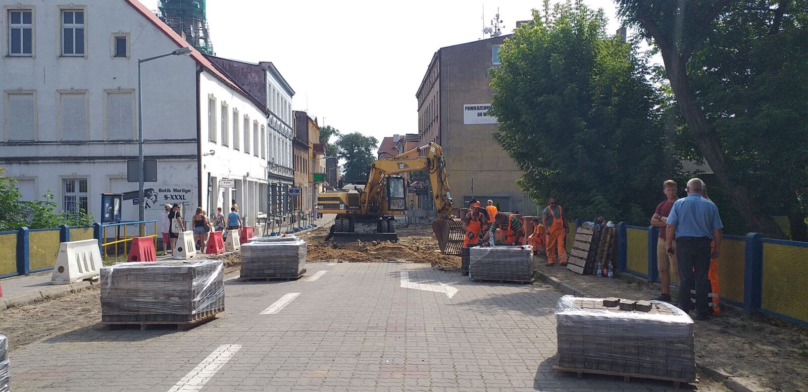 Wykonawcą robót jest bydgoska firma Betpol Spółka Akcyjna. Zakończenie zasadniczej części prac jest planowane na drugą połowę listopada br. Istnieje niebezpieczeństwo wydłużenia terminu prac ze względu na odbywające się działania archeologiczne, które będą prowadzone w trakcie realizowanego zadania drogowego. Nawierzchnia nowej drogi wykonana zostanie z kostki granitowej, z tej samej kostki wykonane będą miejsca postojowe. Chodnik oraz ścieżka rowerowa będą wykonane z warstwy ścieralnej: kostki betonowej wibroprasowanej typu starobruk, na chodniku kolor szary natomiast na ścieżce rowerowej koloru czerwonego.