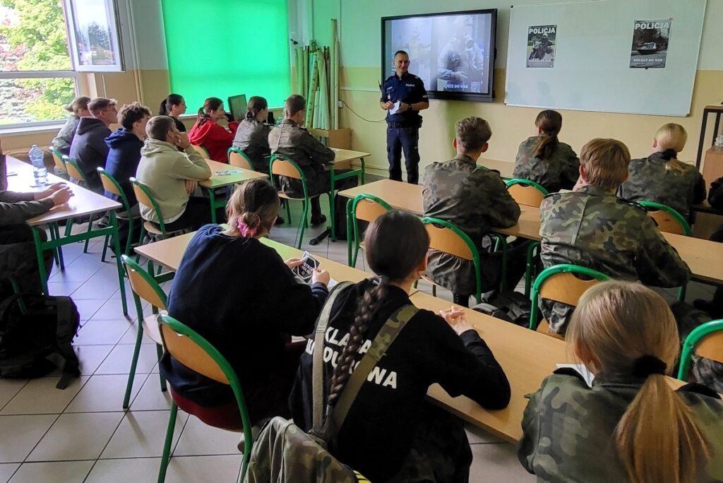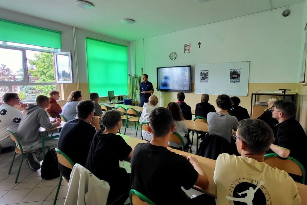 Spotkanie przebiegło w atmosferze dużego zainteresowania i aktywności ze strony uczniów, którzy chętnie zadawali pytania dotyczące zarówno służby w Policji, jak i codziennych sytuacji związanych z bezpieczeństwem. Tego rodzaju inicjatywy są doskonałą okazją do budowania świadomości młodych ludzi i zachęcania ich do odpowiedzialnych wyborów, zarówno w kwestii kariery zawodowej, jak i w życiu codziennym.