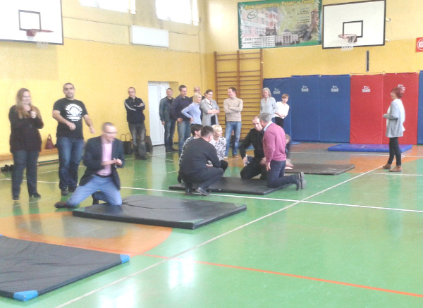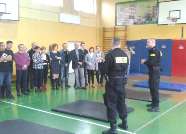 – Podczas spotkania policjanci rozmawiali z nauczycielami o algorytmach postępowania w sytuacjach trudnych. Jednak głównym tematem, który był poruszany dotyczył algorytmów postępowania w przypadku wtargnięcia napastnika. Po wysłuchaniu teorii i założeń programu przyszedł czas na zajęcia praktyczne, które dotyczyły wypracowania umiejętności bezpiecznego upadku, przyjmowania bezpiecznych pozycji w trakcie sytuacji kryzysowej, a także zachowania osób w celu bezpiecznego przetrwania zaistniałej sytuacji kryzysowej.– mówił nadkom. Krzysztof Jaźwiński, oficer prasowy KPP w Żninie
